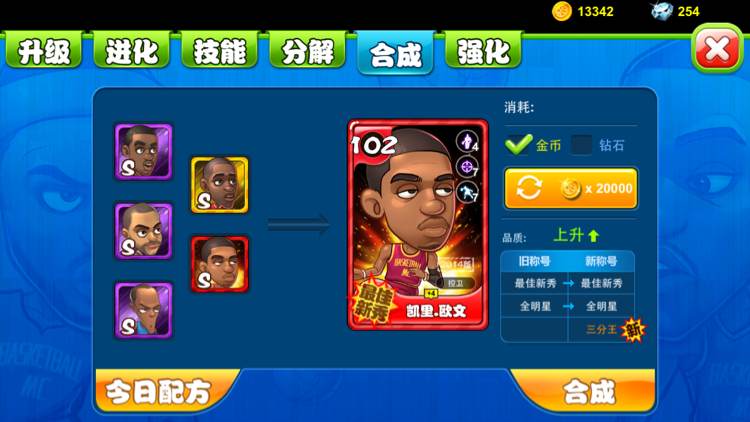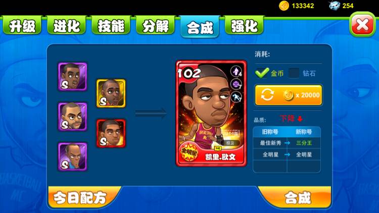 可以合,就当亏了4个紫15,省金币了