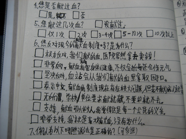 准备做一份关于无偿献血的调查问卷,目前只有手写版的,准备过几天打印出来。