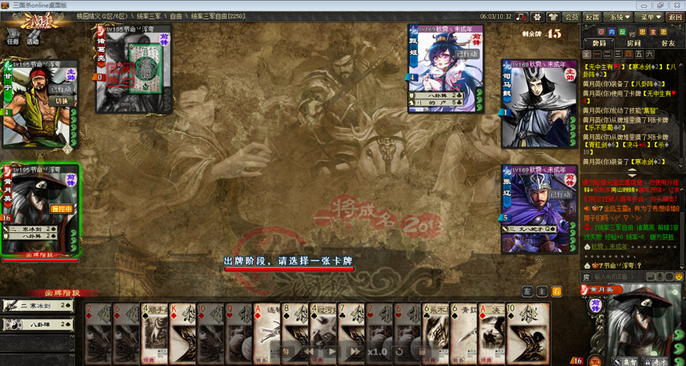 前几天看到甘大神月英的永动机 我也试着去用了一局月英 在此谢谢大神们的指点 对没错 接下来就要说说我们的霸王花 黄月英了 是不是很着急 不要急 容我打开录像
