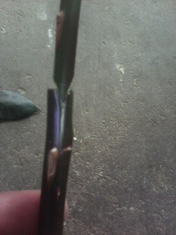 劈接一般就是中间部分一刀下,这个销也比较随便,撬开插入。对齐,绑定,套袋