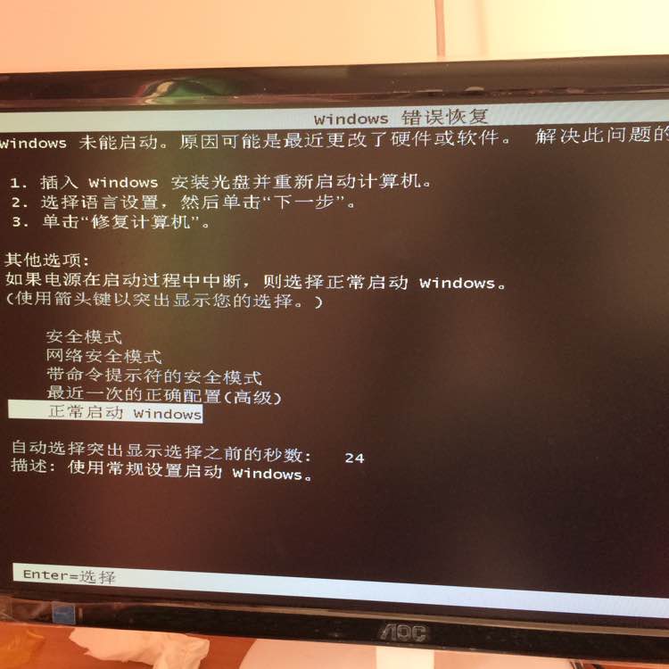 ghost装了win7后一直重启循环