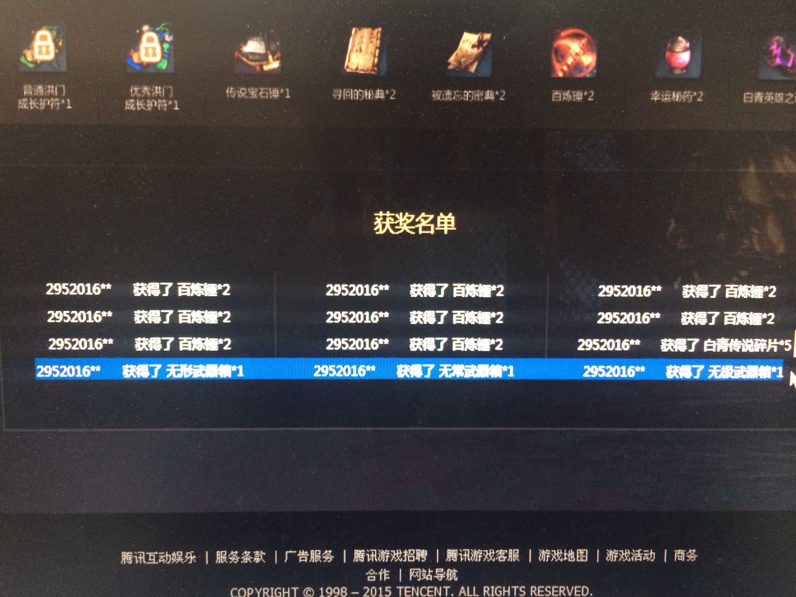 我今天抽的时候,看到底下9个中奖名单都是这个号码,虽然都是锤子