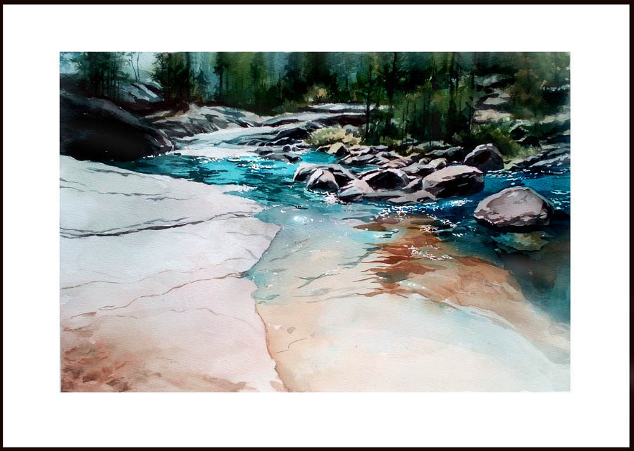 这张画因为画面有波光闪烁的效果,所以留白胶的使用比较关键。