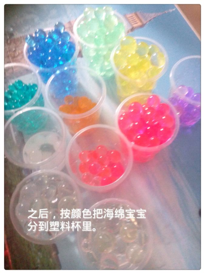 第三步。白色的和透明的可以不用,除非你嫌颜色太少,可以用透明的海绵宝宝染成其他颜色。