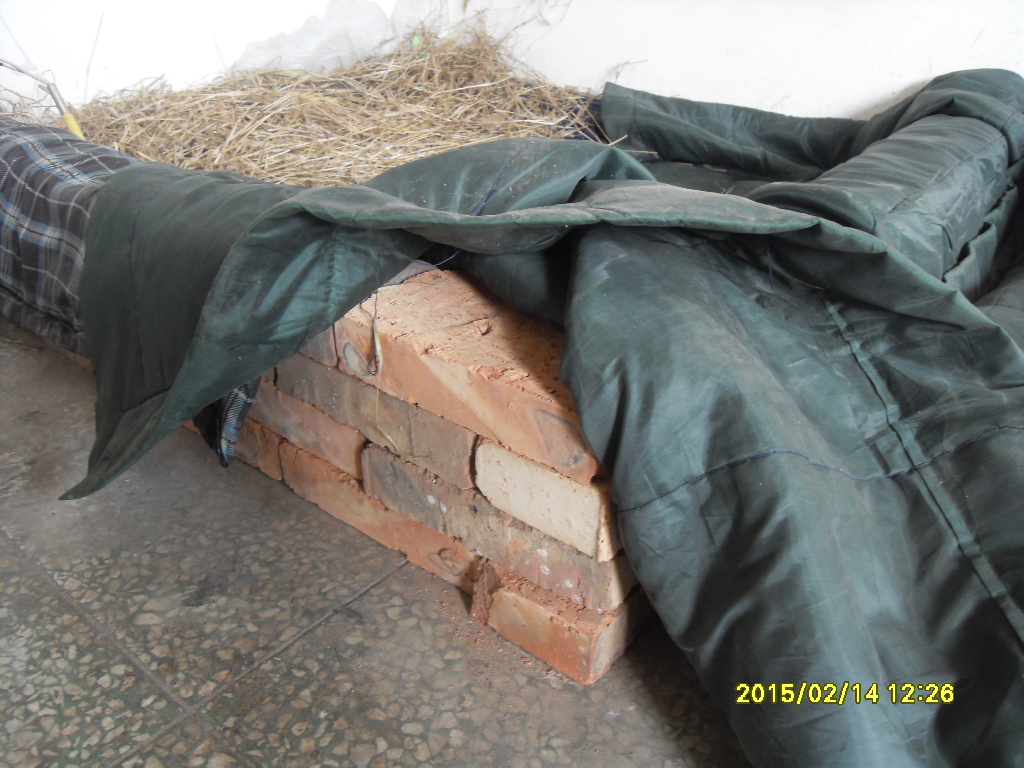上面悬挂浴霸灯泡,取暖用,其实现在北方的气温已经开始一天比一天暖和了,晚上都到零上了。