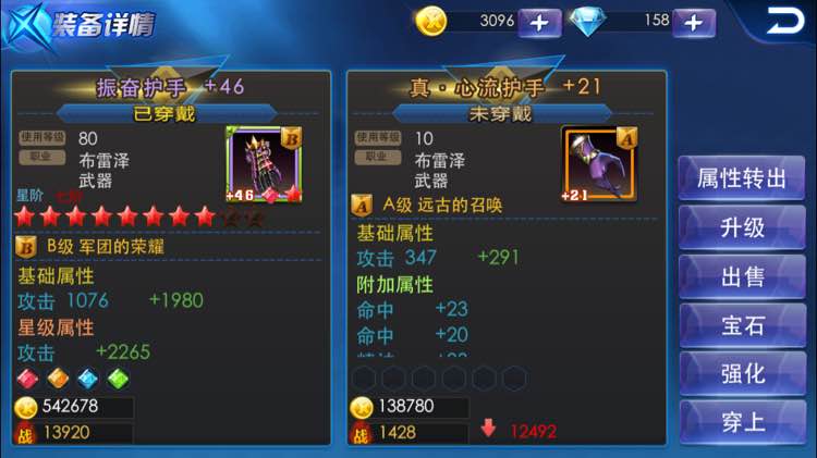 :是的。你现用的B级武是80级…新买回来的A武是10级…