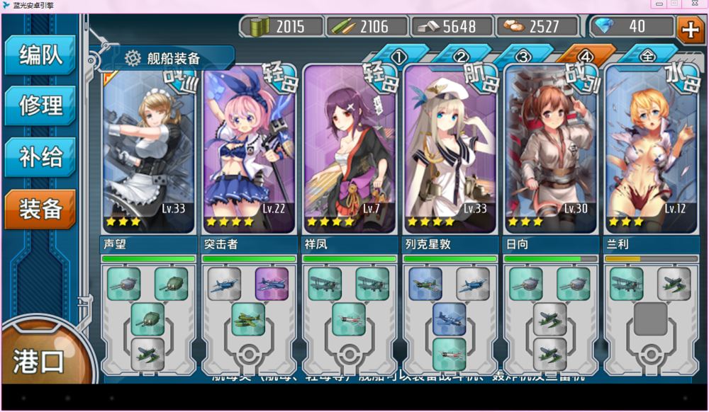 战列自带主炮,副炮都是高雄一家的。舰载机是自带的还有建出来的垃圾飞机。日向和声望拆炮塔改成航空战舰加索敌。