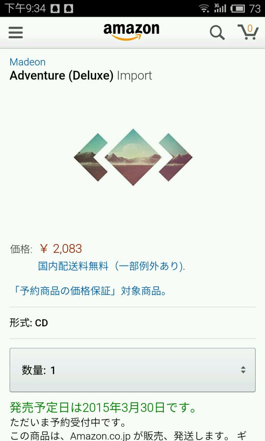 3月31日 madeon新专adventure就要发布了 最近上某宝想看看m的实体新专有木有预订 结果发现没有[泪] 我有一个在日本留学的朋友 我跟他说了下 他说可以帮一下想买m实体新专的可人儿们 途径是淘宝的 现在还没有上架呢