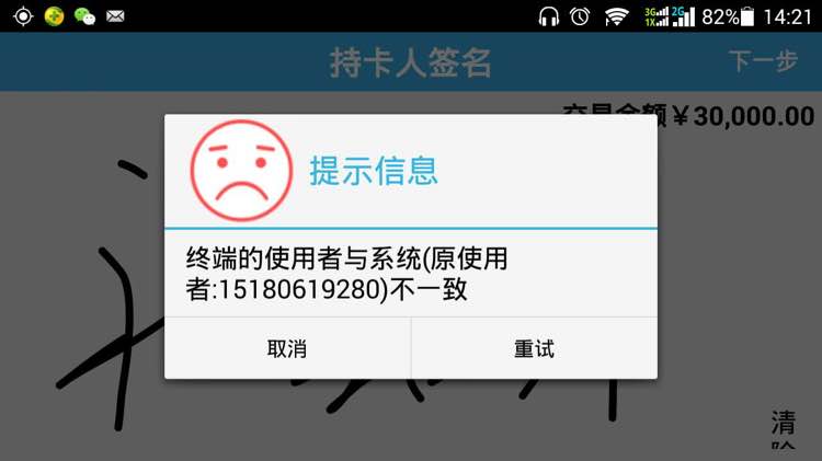 怎么会显示这个呢?我这个机子没有认证成功,但是我在访问福店的时候输了这个号码的店 ,我想刷卡的时候就出现了这个?难道说我的机子绑定了这个号码吗?