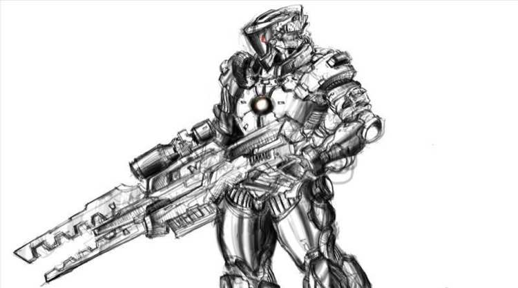 这张是当时一时兴起,就按脑子里的想象画了一个士兵~依然只是个线稿。。
