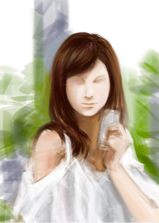 然后就是昨天开的新坑。。上一张实在画不下去了,要不就放弃,要不就重画。。我决定还是等有些许进步再重新画一张好了。 新画的一张可以很明显的看出不同,前一张色彩板绘是先打了两个图层的线稿,再开始上色。而现在这一张是直接用大块的笔刷刷颜色,类似水粉刚开始画时的阶段。。然后逐步详细下去。我觉得还是这个方法比较适合我。。。但是颜色还是调的灰了一些