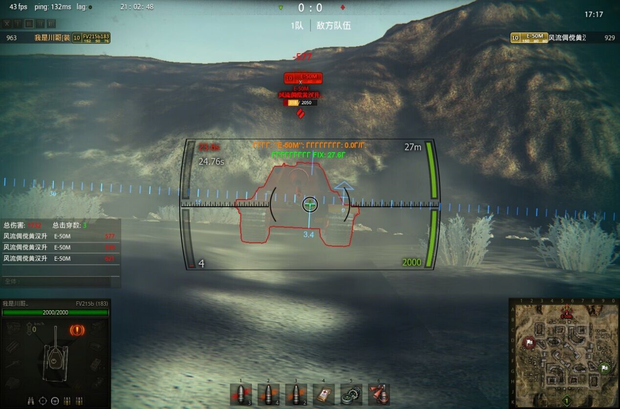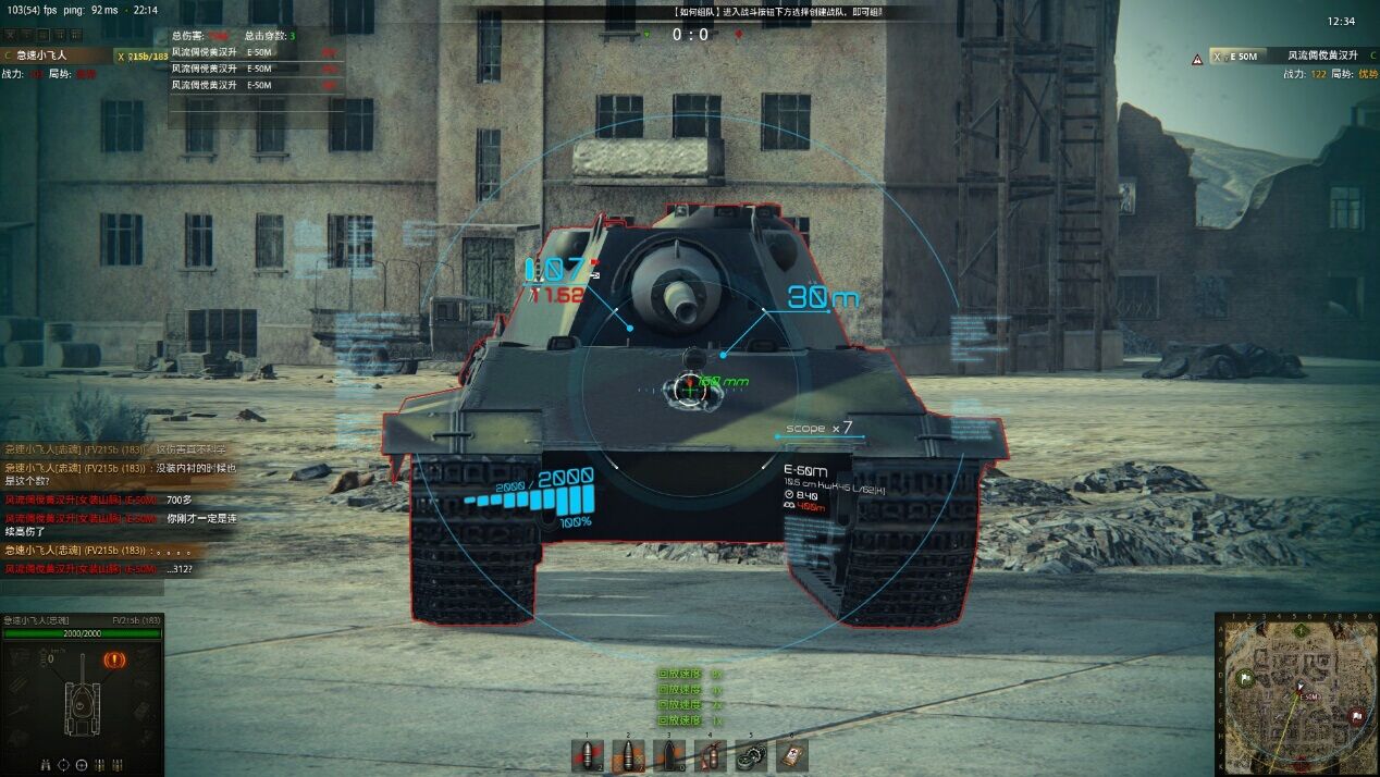 这次的测试主角为首上居然等效高达270的德系的E50M和HESH穿深居然高达235的183,如此高达,不怕折腾。