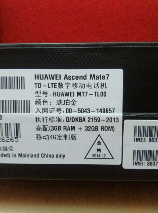 华为MATE7移动高配官网直邮,全新未拆封
