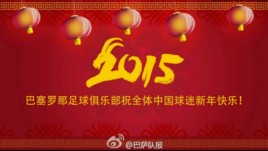 来自巴塞罗那和皇家马德里足球俱乐部,祝大家新年快乐
