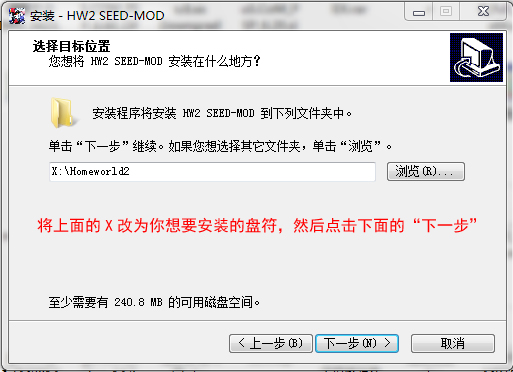 4.在对话框中输入家园2所在盘符。例如:d:\homeworld2