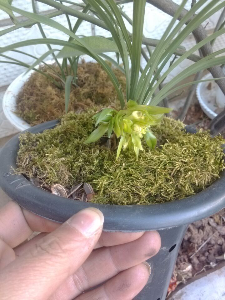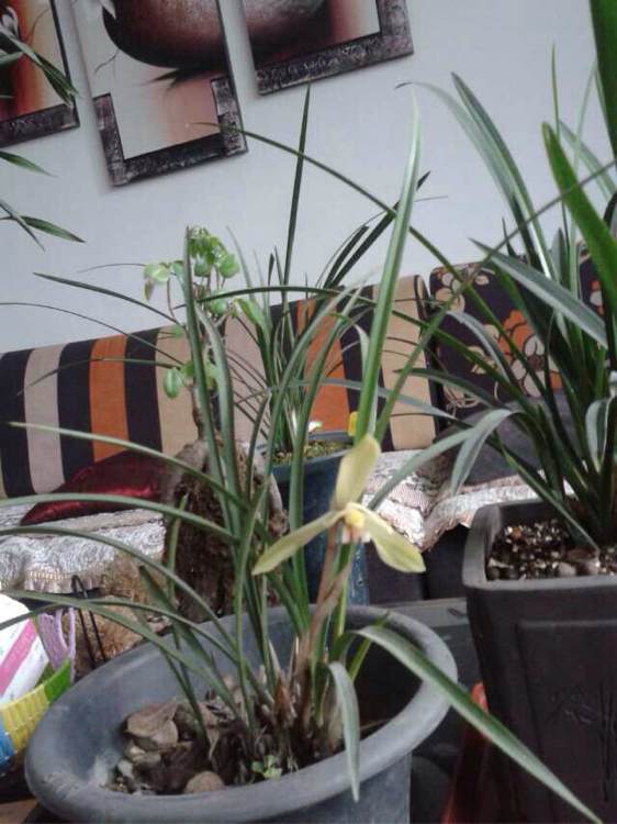 上边是大花蕙兰黄金美人,后边有普花和春兰黄花三星蝶~