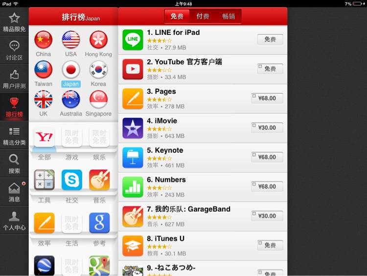 然后竟然有日区排行榜(总归就是把中区能下载的游戏 按日区排行拍的