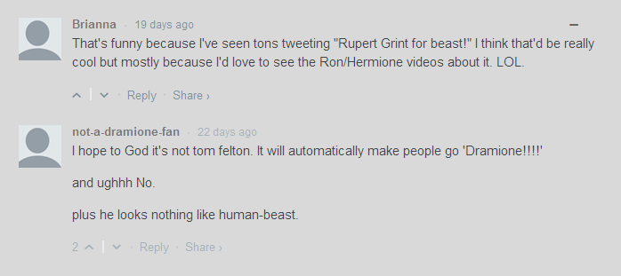 内容是关于女神的新电影美女与野兽的一些讨论~~(有关德赫....==)