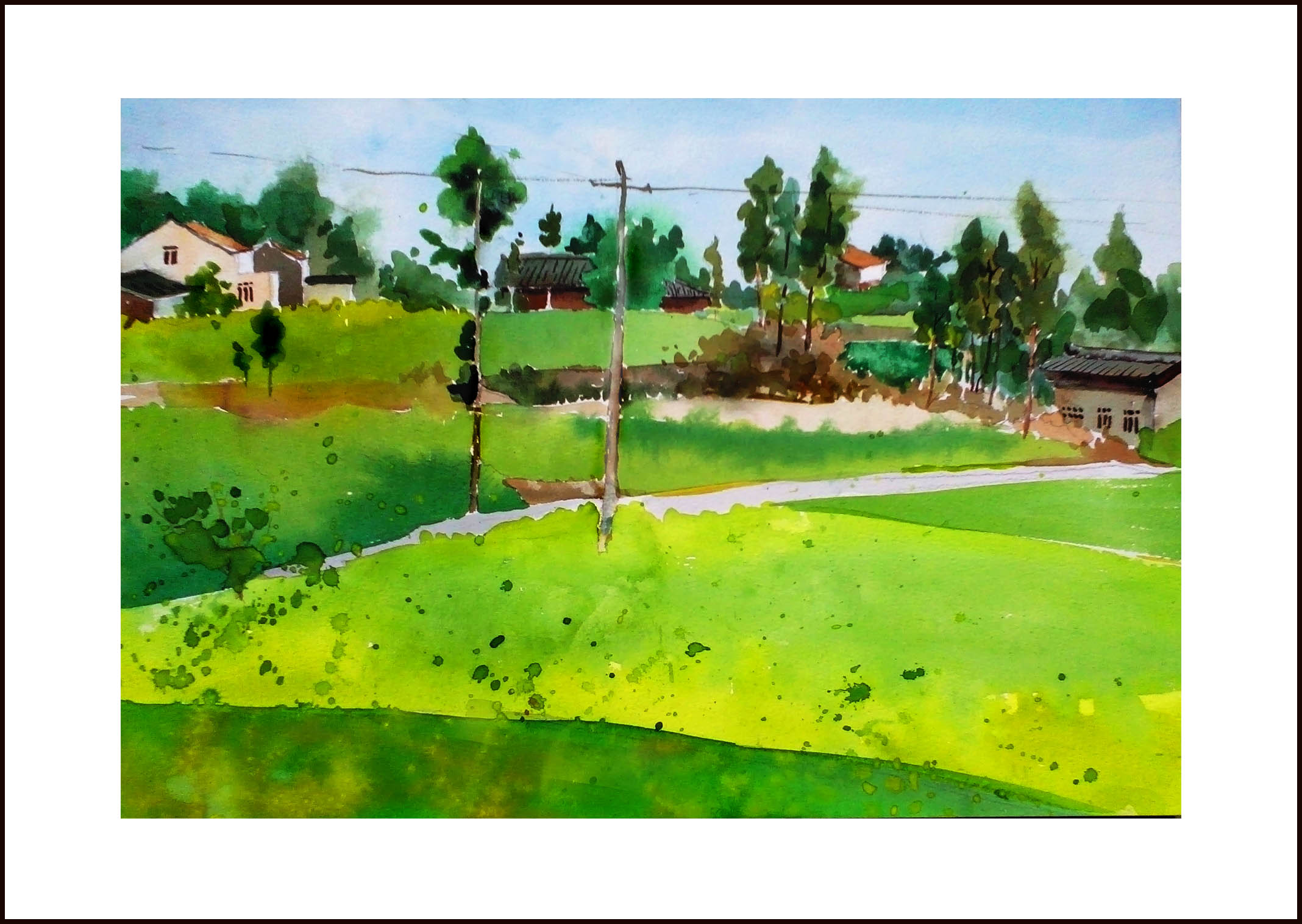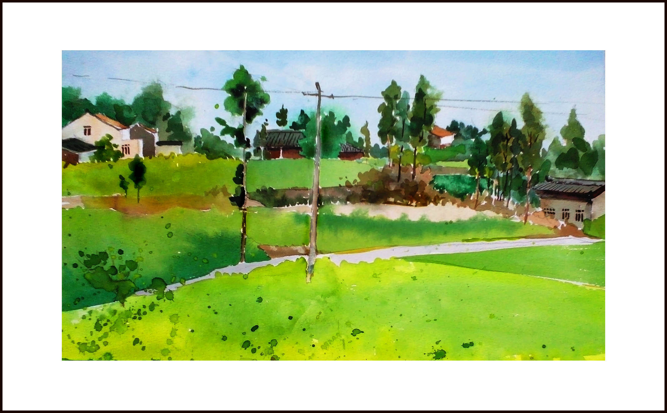山峰四组那张原来下半截是画的水泥路,后来感觉不好,又改成田野,结果改的比较别扭,