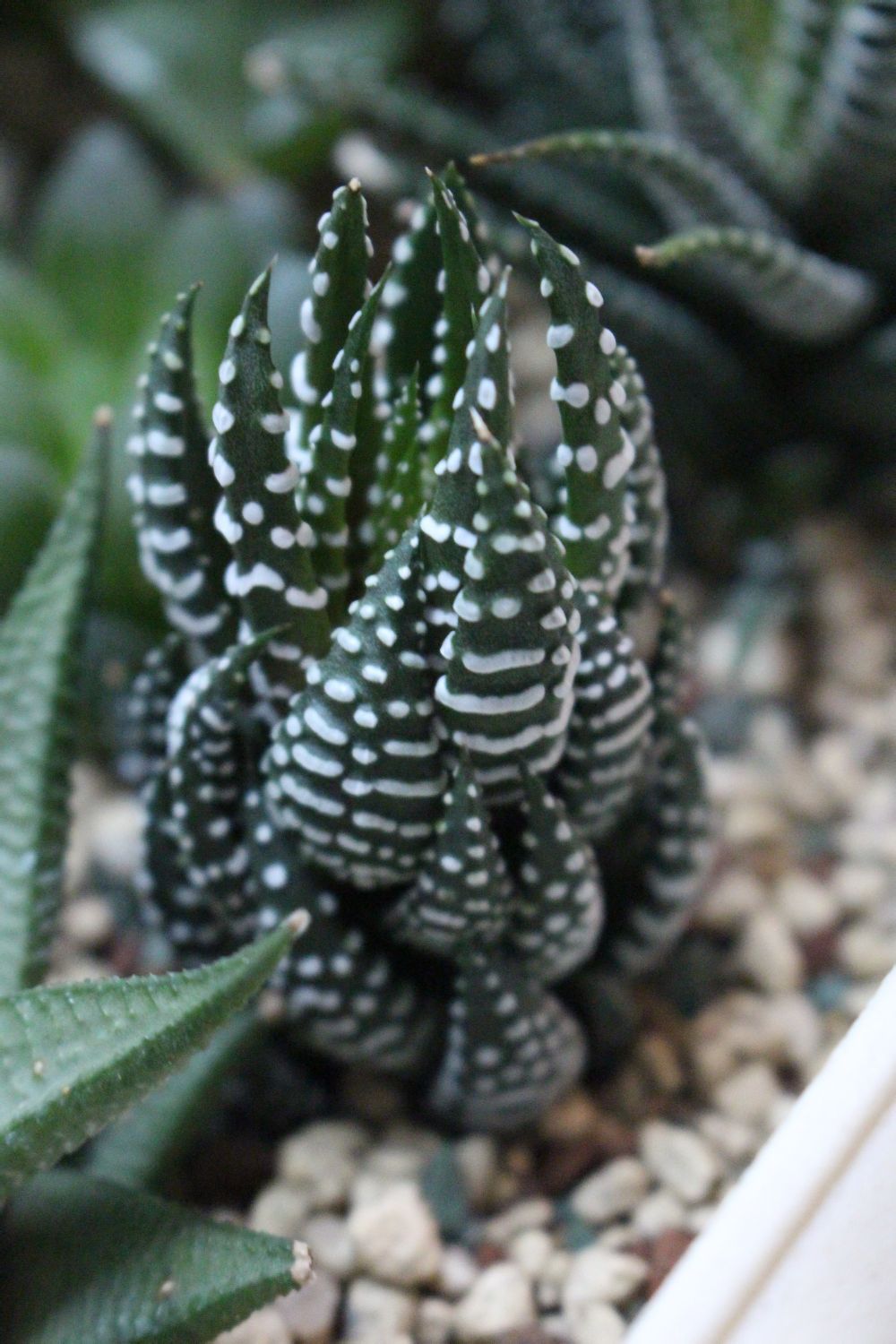 这个在12月至1月期间有不少日照时间,但叶片开始细长了,没有来时那种匀称微微向里收的状态了,是营养过剩了吗