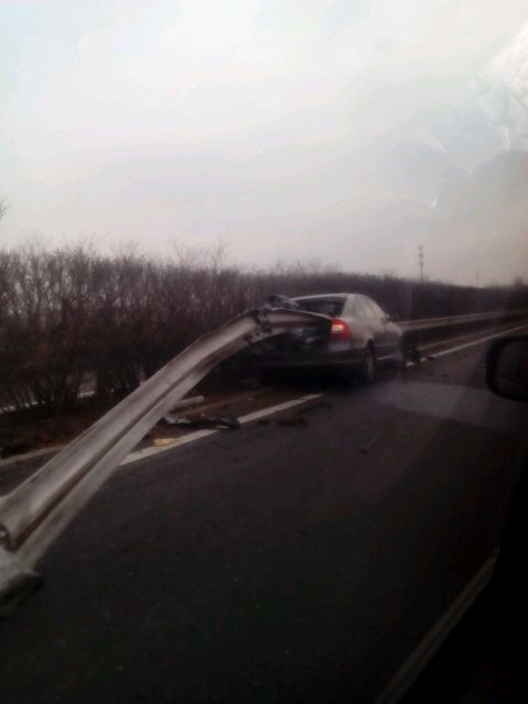 这个真惨啊,护栏都插车里了。