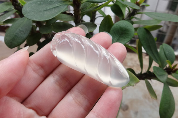 料白冰玉髓福贝,形状独特,纯手工雕刻抛光
