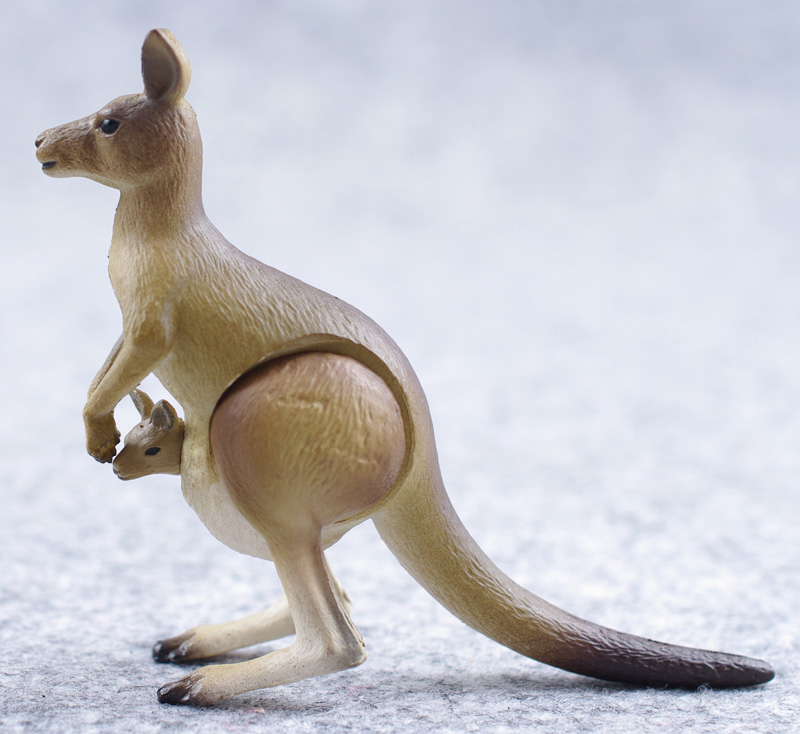 【大袋鼠及幼崽】,编号AS16。官方定名为“Giant kangaro”,翻译过来是大袋鼠。但大袋鼠实际上是一个属。从外观上看此款设计和配色上更接近于雌性红大袋鼠,不过这个也有待商议。总体来说还可以,双腿可动。