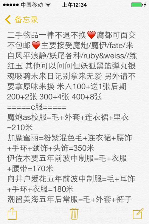 楼主过年收叻一小笔压岁钱又忍不住出来扩衣柜叻23333求华丽丽的有质量的C服!最好素300-500米子的【【可面交可邮寄】】