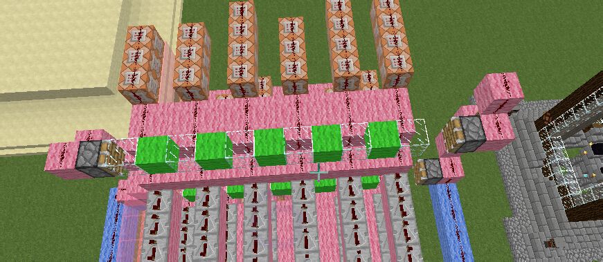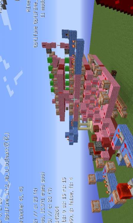 总之还是被玩坏了的setblock命令……算了算,大概四百多个命令方块95%的都是setblock……他的卵用嘛……按下开关后造房子……