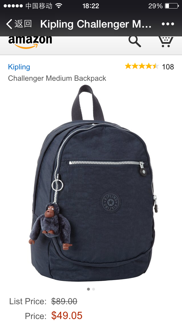 转让美国亚马逊全新kipling藏青challenger medium款