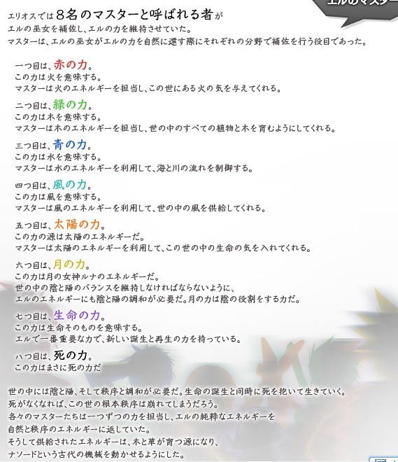 人们从贤者中选择出八位掌握艾尔之力的【主人】,与他们的【法师】共同管理艾尔之力。