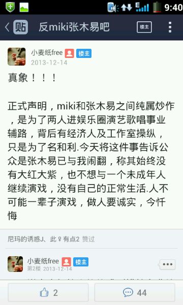 才这种程度就受不了了,楼主也挺脆弱的。黑粉的存在对于Mi2是一种肯定,一点名气都没有的组合谁去黑啊?米兔要做的是陪Mi2走下去,而不是和黑粉叫板。黑粉会截图拿出去说事,米兔会被定义为脑残粉,粉丝行为,偶像买单,后果可想而知。TFBOYS和EXO楼主一定知道吧,那么多黑粉在黑他们,粉丝没有多少去和黑粉吵的,他们照样发光,米兔要向四叶草和行星饭学习这一点,而不是做害己的事。