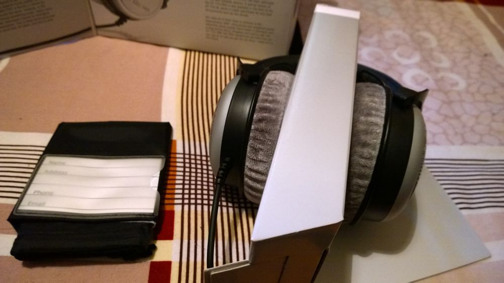 上面,右边的新的,左下黑的圆圈被白纸帖掉的,里面是写着250欧。。。。。,帖掉就变成32欧了,话说这个耳机本体就是250欧,其他都是骗人的,不过话说250欧直插真没32欧好使。