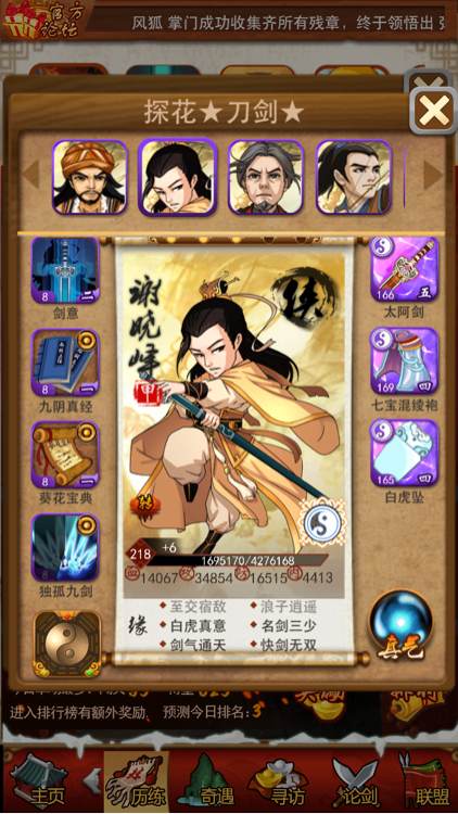 不过对面属性是比你好,你赢他算投机,你1、2号位放诸葛、三丰,3、4号位放留香、小凤,5、6号位放西门、风老,7、8号位放独孤、令狐,你看赢不赢,打三次他不换阵必赢