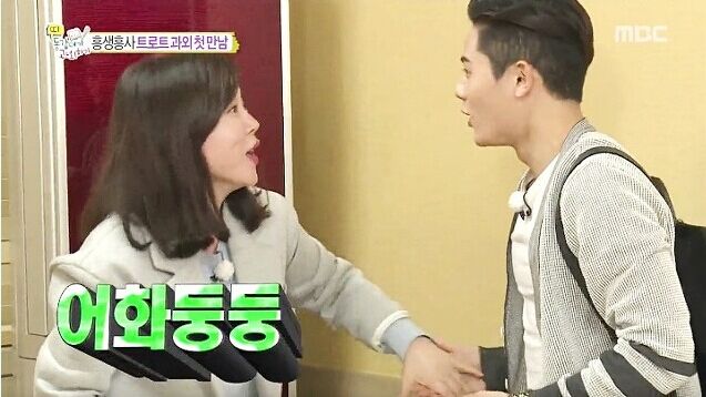我很佩服韩国人的是一般我只要比我大十几岁的人就称呼叔叔阿姨了,金桐俊比崔华静小三十一岁~叫姨母都绰绰有余~但我们baby叫怒那叫得那么甜~难怪怒那看到他笑得像朵花~怒那吃桐俊豆腐吃得很爽~怒那很开心的调戏桐俊~怒那对着桐俊笑得花枝乱颤~怒那揩金桐俊的油揩得忘乎所以~