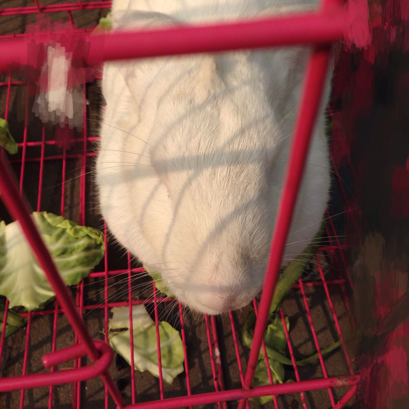 一只晒暖的,嘴巴嚼个不停的,大肥兔!