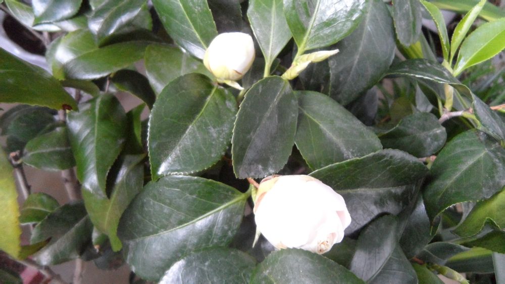 养了一年的茶花,现在开了,