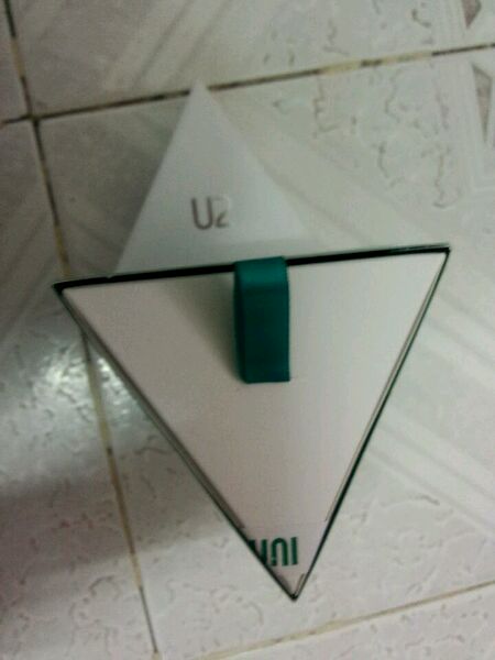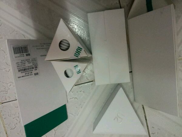 三棱柱,这么包装很特别, 开苞,一个拉环出现了,再一拉,背面露出来了,附赠保护壳好评,很硬
