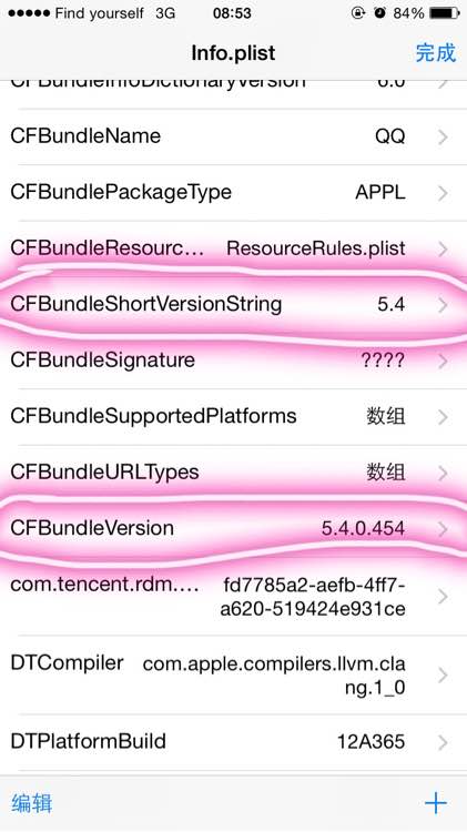 此方法是以QQ示例,要改其他的软User/Containers/Bundle/Application/你要改的软件文件夹/软件.app/info.plist 用属性表编辑器方式打开 把CFBundleShortVersionString这一项和CFBundleVersion的数值