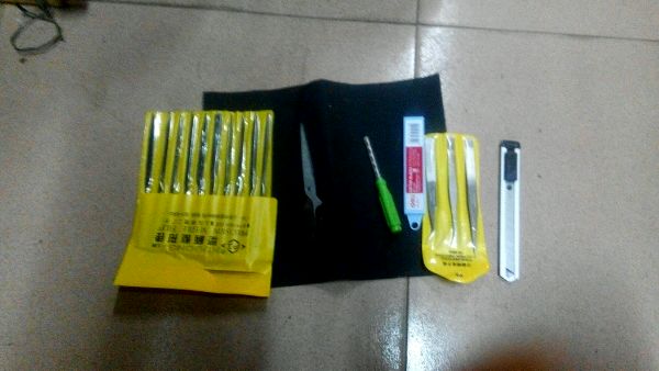 锉刀一套,剪刀,手工钻,刀片,镊子,美工刀,砂纸!竹签4mm40cm500根,2.5mm30cm300根,应该不够,后续再买