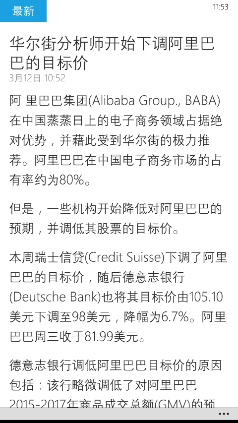 巴伦周刊讯:华尔街分析师开始下调阿里巴巴目标价