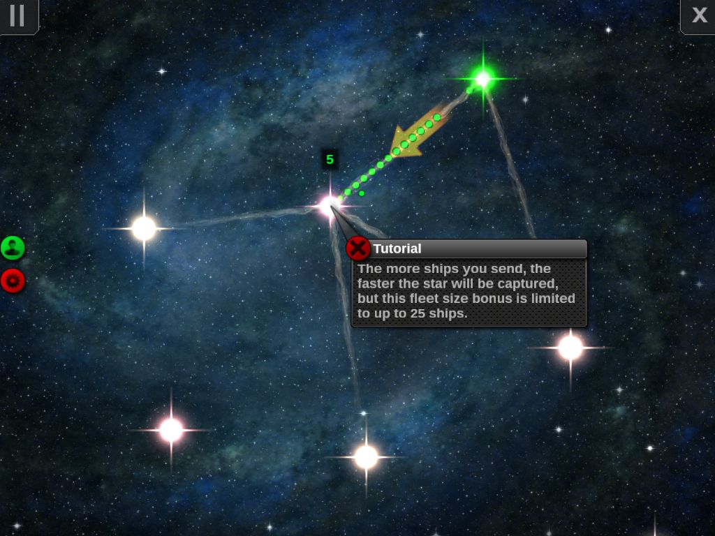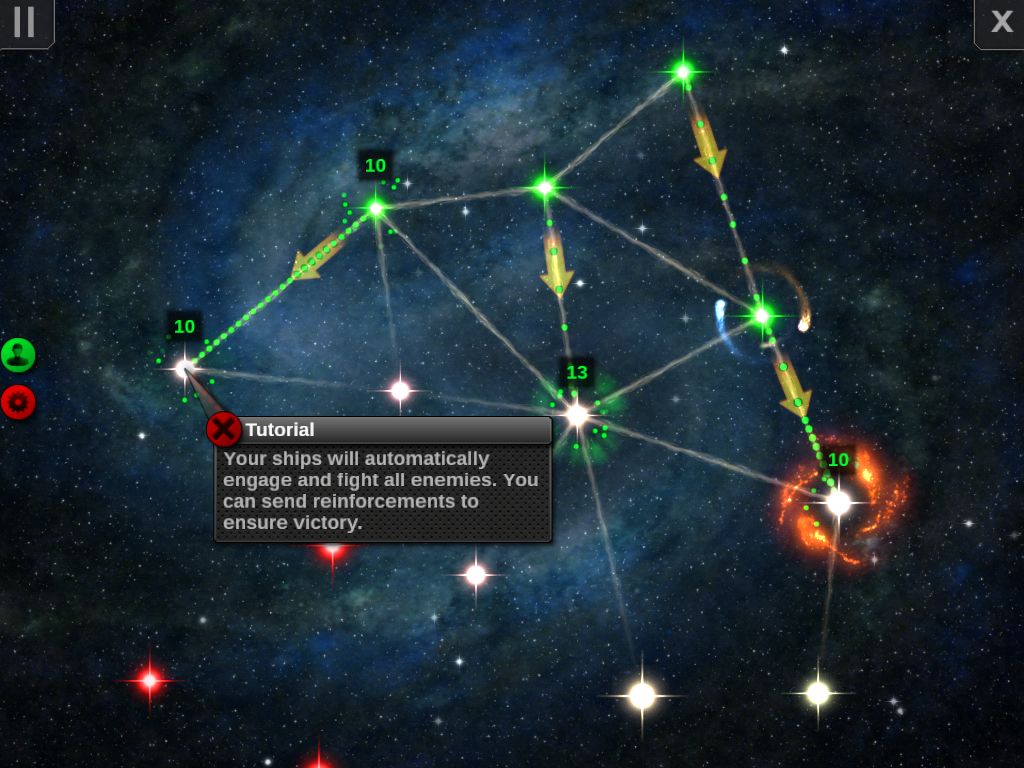 你的星舰会自动攻击敌人,你可以派些援兵来确保你胜利。