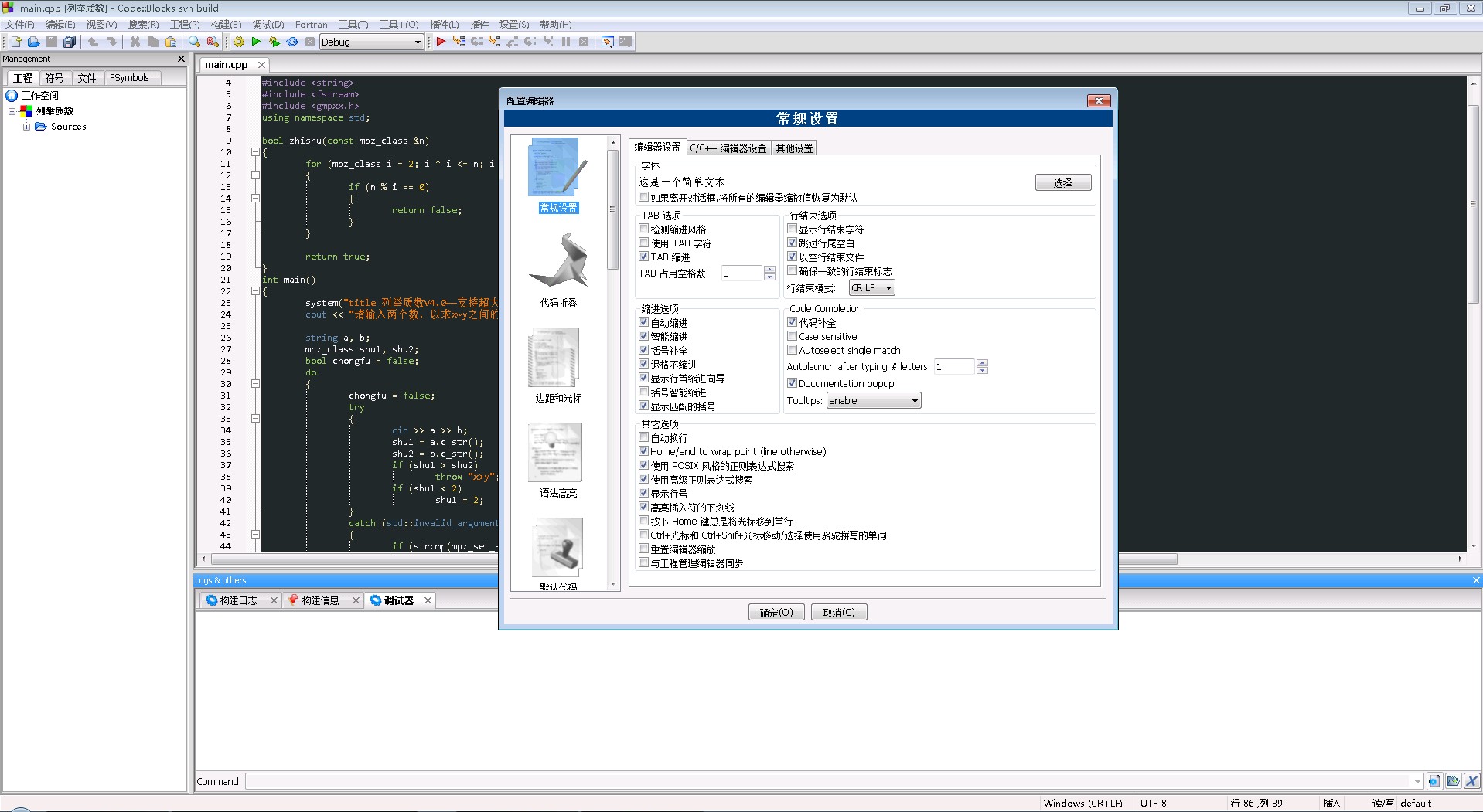 这次的Code::Blocks是中文版的,功能很强大