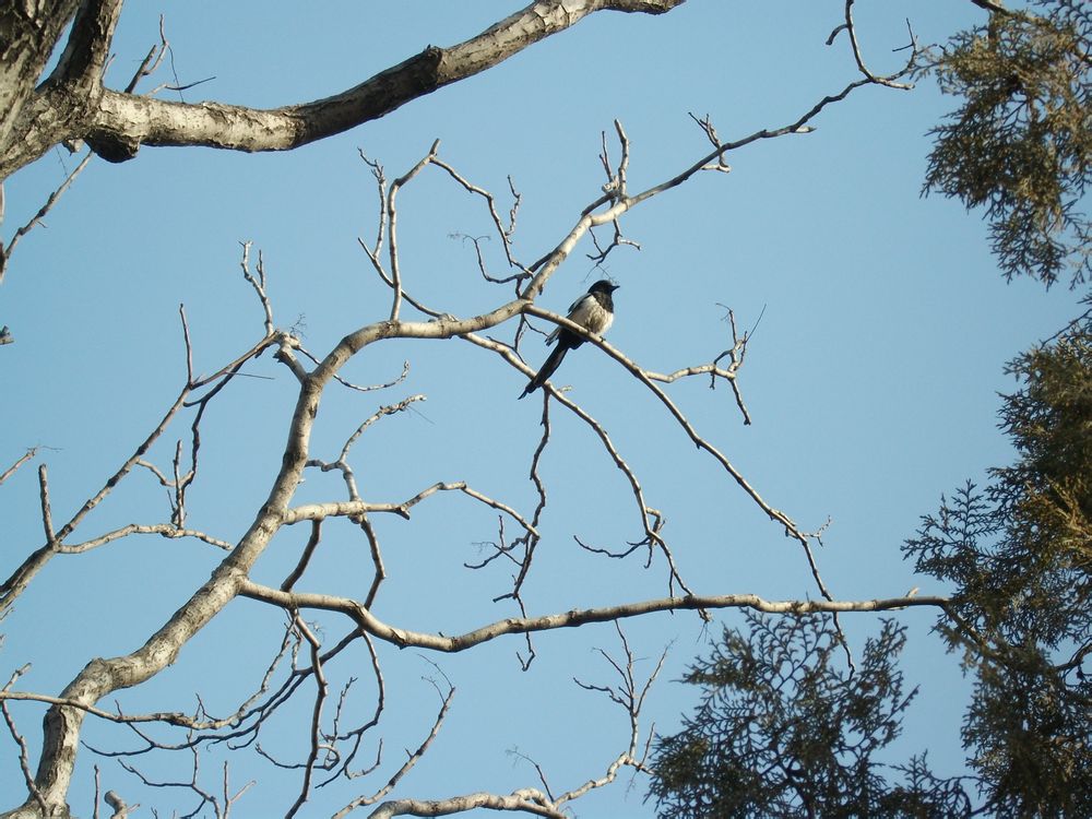 停在树枝上的小喜鹊,趁其不备,偷拍下