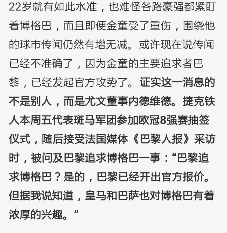 内德维德承认巴黎报价博格巴!
