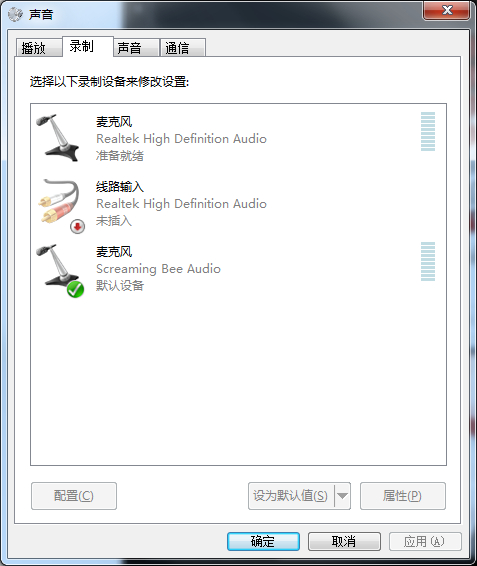 电脑右小角小喇叭点开,录制,麦克风 将我们刚刚下载的虚拟声驱选为默认设备,这样只要你点开软件就是你经过处理的声音。效果的话因人而异,如果有不懂的地方可以跟帖留言尽量帮大家解决,祝各位玩的愉快