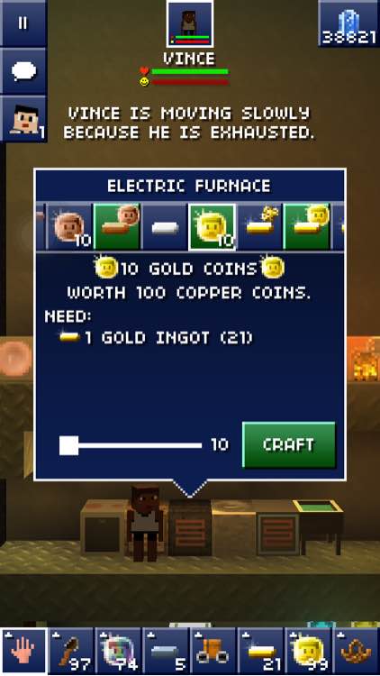 第一步,找到花花绿绿的矿物(铜矿),挖十个以上,烧成铜锭,炼铜币,换金币,早出来!