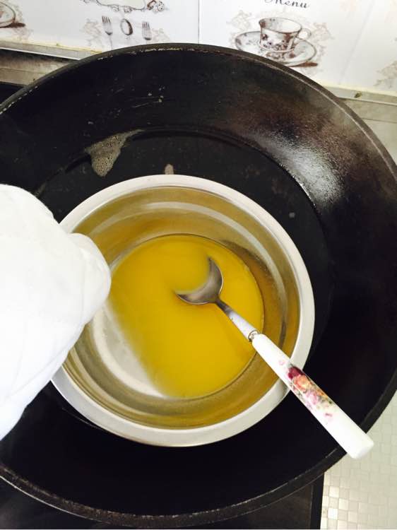 融化黄油。67克黄油。隔水融化。千万记得不要进水。进水就废了。所以要小心。有手套戴上手套。盆子会很热的。之后与饼干搅拌均匀。放入模具中。这里最简单的是用手压平压整齐。我觉得不卫生。就一直用勺子。刚开始很费事。掌握不好力度。慢慢就好了。要有耐心。要压实。铺平。