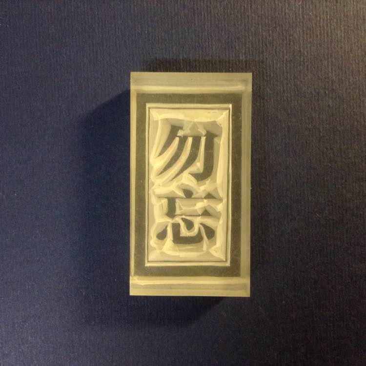感觉这个还是很适合刻直线的~虽然大白那个刻得线条各种渣……但是这个直线比较多的字章效果就挺好的~【挖完留白之后再从背面看,比之前好一点啦
