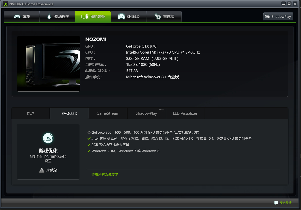 更新了N卡347.88的驱动以后,游戏优化用不了